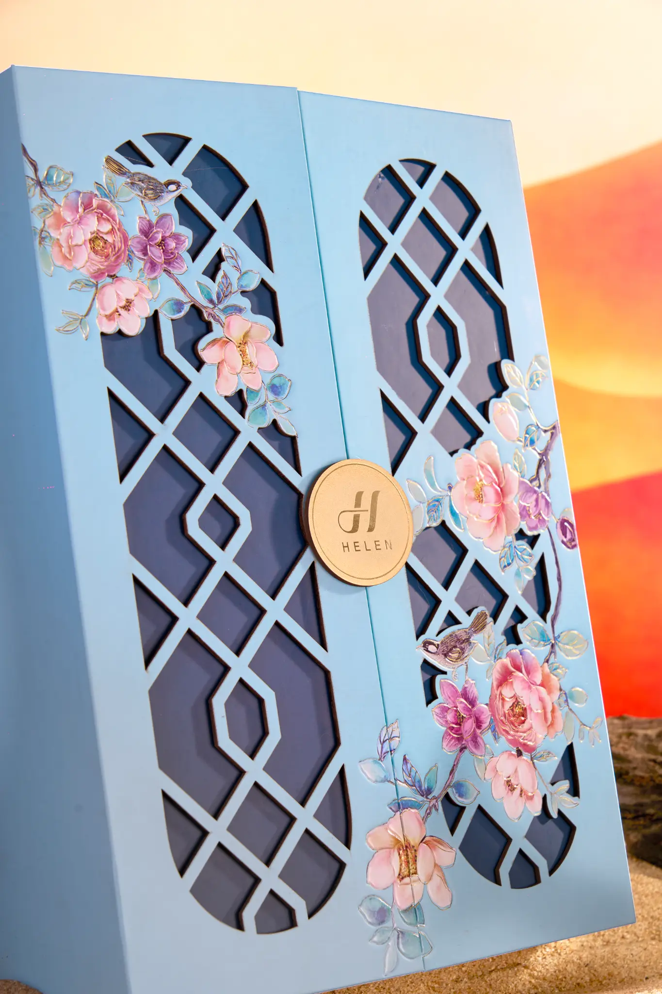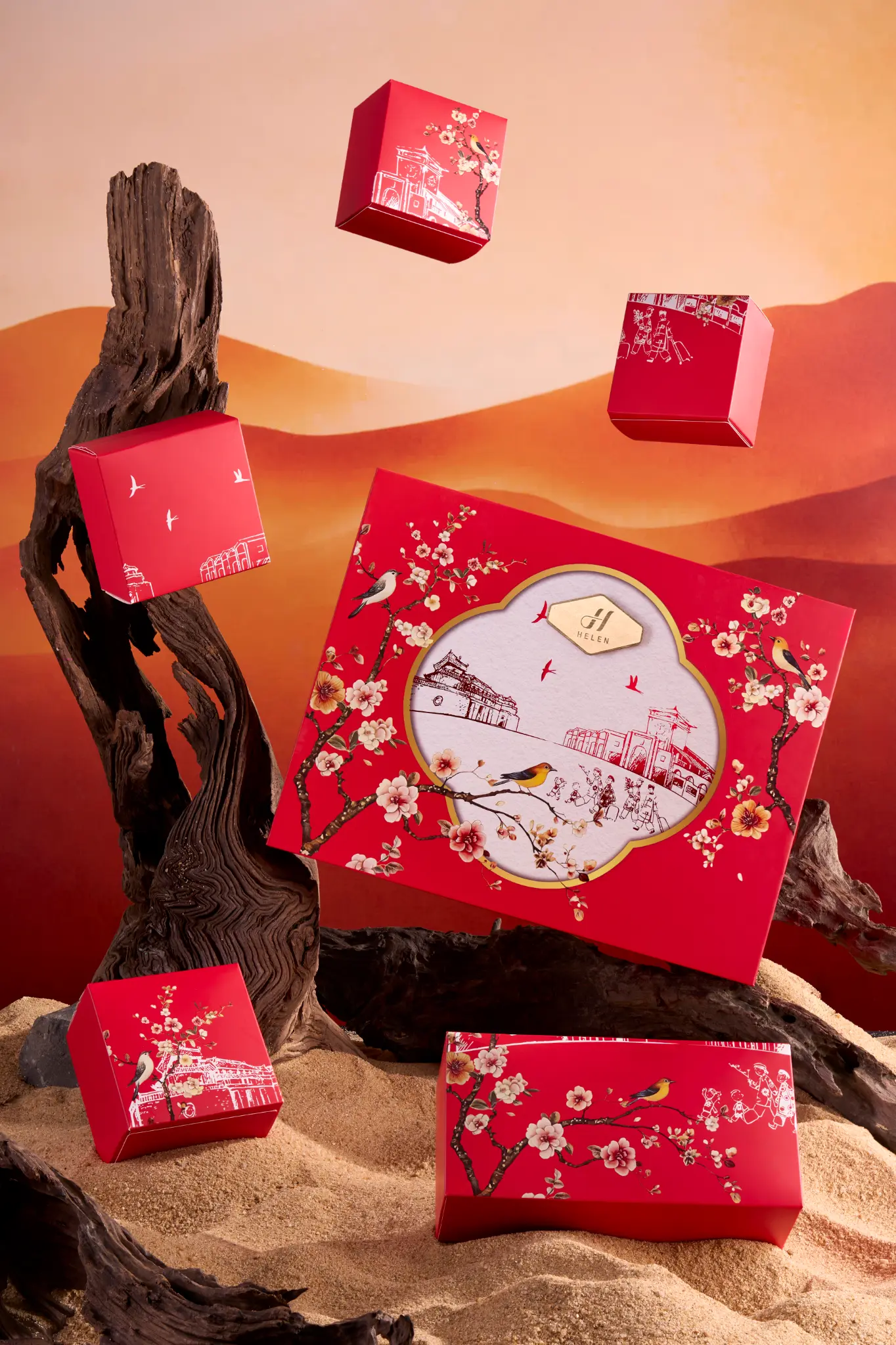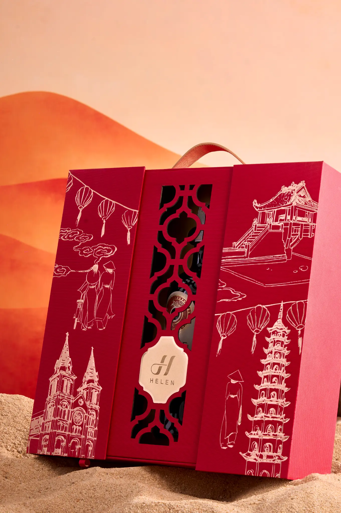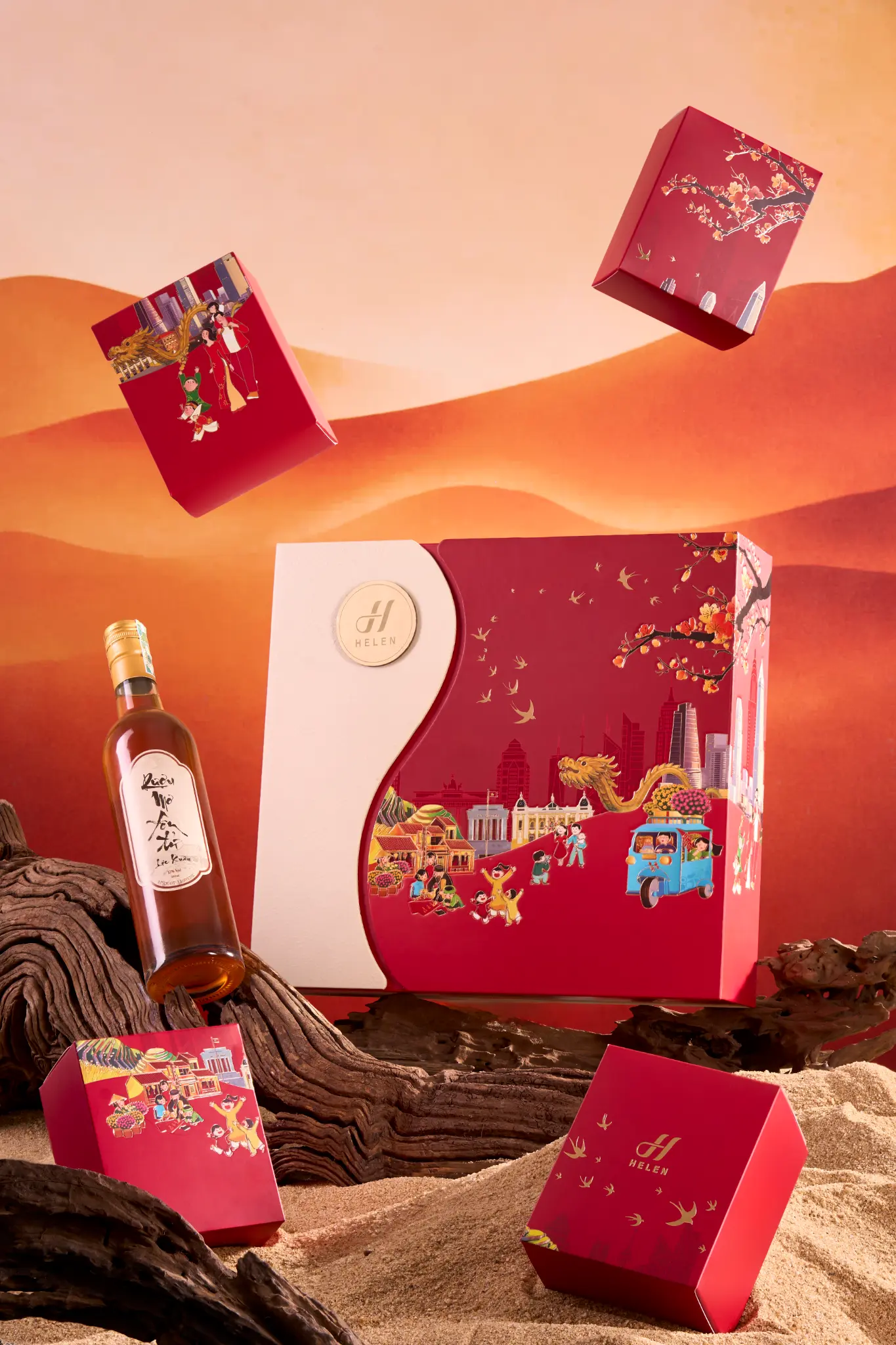 Chiếc hộp là một Kiệt tác nghệ thuật với sắc Đỏ Hoàng Gia lộng lẫy, kết hợp cùng họa tiết Chim én báo xuân và Cành đào nở rộ được chạm khắc tinh xảo. Đây không chỉ là một món quà biếu, mà là một lời chúc Kinh doanh Phát đạt, Tài lộc Vĩnh Cửu, một năm mới sung túc vượt bậc, xứng tầm với vị thế đỉnh cao của người nhận.