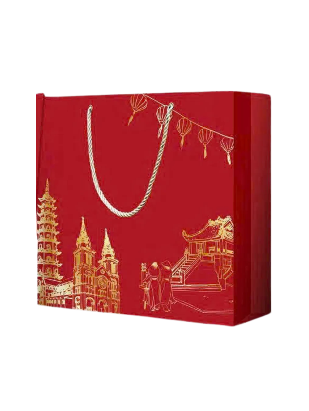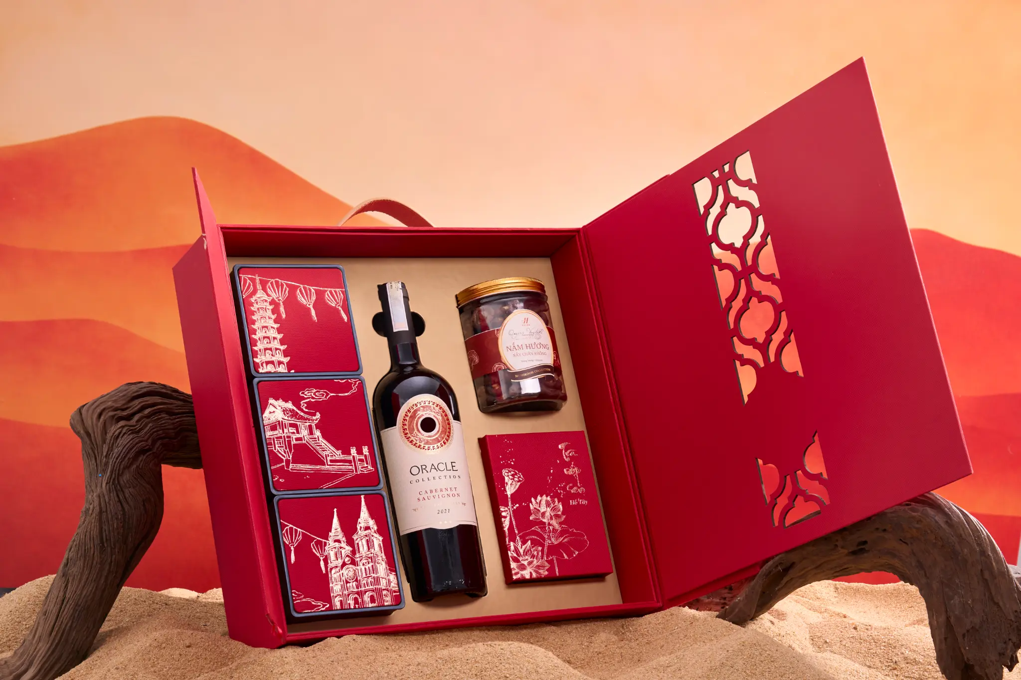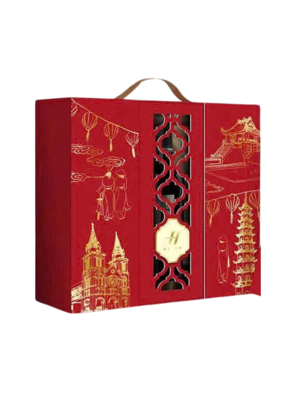Chiếc hộp là một Kiệt tác nghệ thuật với sắc Đỏ Hoàng Gia lộng lẫy, kết hợp cùng họa tiết Chim én báo xuân và Cành đào nở rộ được chạm khắc tinh xảo. Đây không chỉ là một món quà biếu, mà là một lời chúc Kinh doanh Phát đạt, Tài lộc Vĩnh Cửu, một năm mới sung túc vượt bậc, xứng tầm với vị thế đỉnh cao của người nhận.